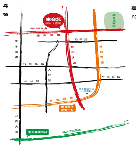 注:自駕與會人員車輛統一停放地——桐鄉市會展中心停車場