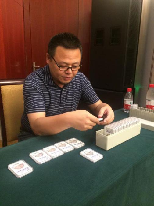 <沈陽造幣廠高級設計師劉鴻鵬現場為全國錢幣博覽會紀念章簽售>